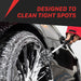 The wheel brush is 45-degree angled and made of 100% microfiber, simplifying wheel detailing using soapy water, and its extended length allows easy access to deep wheel wells. The innovative 45-degree angle reduces the challenge of cleaning narrow spaces and reaches hidden areas, making it an efficient brush to maintain your vehicle. These brushes ensure the safety of your car, leaving no streaks, scuffs, scratches, or damage to your vehicle rims, even if painted. They feature high-density microfiber that offers excellent cleaning ability and durability with high water absorption capabilities.
